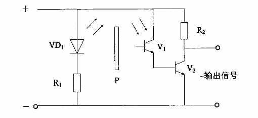 光電式傳感器的特點(diǎn)就是輸出的為直流信號(hào),不需要進(jìn)行整流,輕便可靠,但是信號(hào)較弱,需要經(jīng)過(guò)放大才能控制開(kāi)關(guān)管。如圖所示,即為一個(gè)光電式位置傳感器的工作原理圖,紅外發(fā)光二級(jí)管VD1通過(guò)發(fā)出紅外光,當(dāng)遮光盤(pán)P隨電機(jī)轉(zhuǎn)子一起旋轉(zhuǎn)時(shí),紅外光間斷低照在光敏三級(jí)管V1上,是其不斷導(dǎo)通和截止,其輸出信號(hào)反映了轉(zhuǎn)子位置,經(jīng)過(guò)放大后驅(qū)動(dòng)逆變器開(kāi)光V2