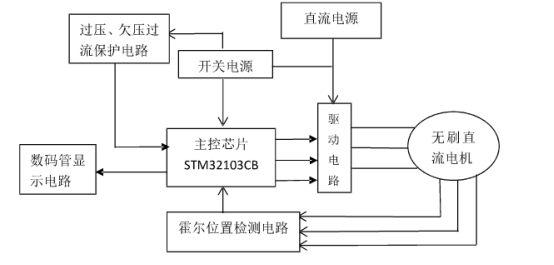 由控制體系整個設計結構能夠得出,這個控制體系中信模塊主要有4個部分構成,主要是控制芯片和電路以及逆變與驅動電路和霍爾傳感器所構成,第一、直流電源經(jīng)過逆變器轉換后對電機展開供電,另外通過固定在有感無刷電機繞組中的位置傳感器去監(jiān)控轉子的位置數(shù)據(jù),器獲得到的位置數(shù)據(jù)通過簡便的濾波與電平上拉之后被傳到控制芯片的數(shù)據(jù)接收模塊展開信息處理:進一步位置信息能夠通過芯片放大, 產(chǎn)生六路脈沖驅動功率管,最終,經(jīng)過對六路功率管道統(tǒng)合斷開次序的控制,達到有感無刷電機能夠順利換相的目的,從而讓電機可以更為順利的工作,也能夠有效提高系統(tǒng)的工作效率。